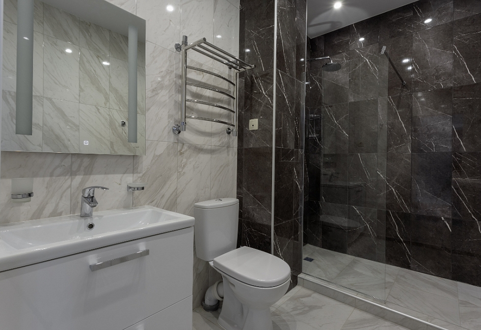 санузел с душем, туалетные принадлежности