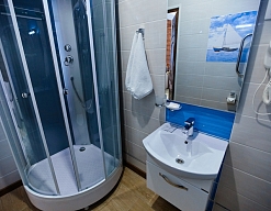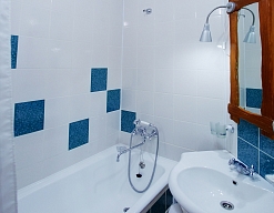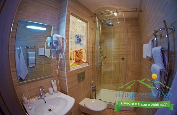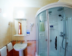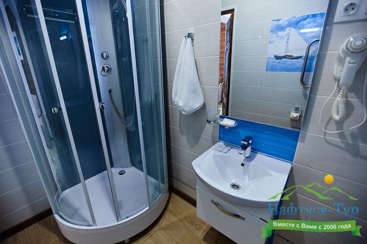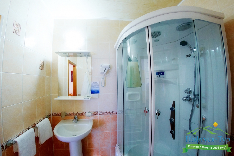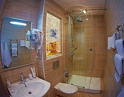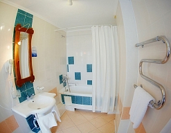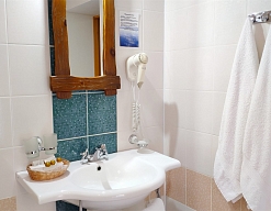 с ванной или душевой кабиной, туалетные принадлежности, фен