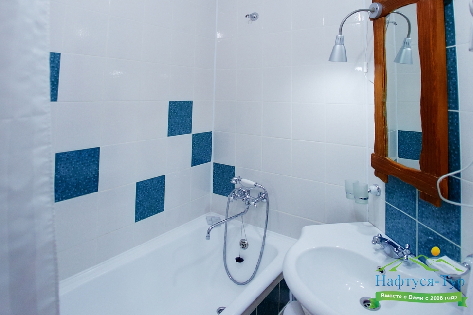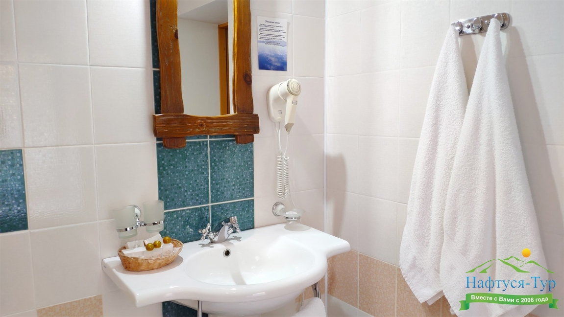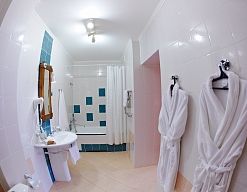 с ванной, туалетные принадлежности, фен, халат