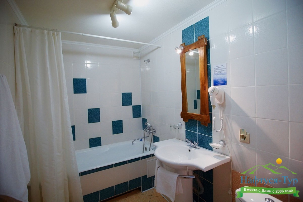 с ванной, туалетные принадлежности, фен