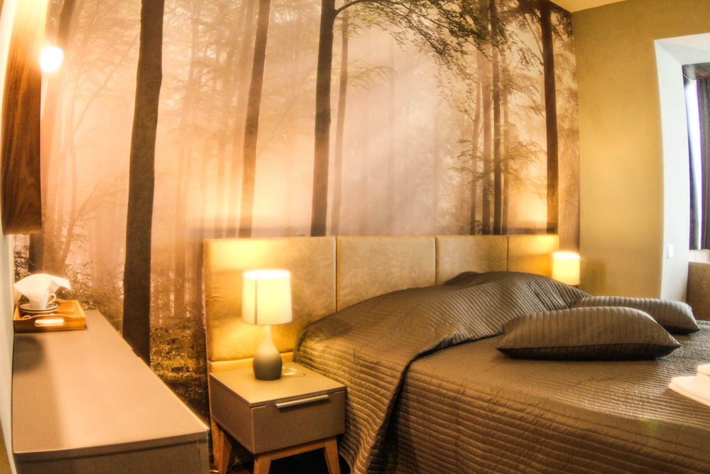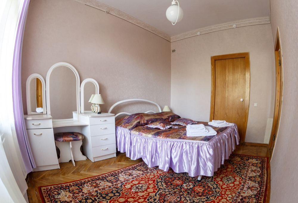 вешалка, диван раскладной, зеркало, кровать двуспальная, прикроватные тумбочки, стол, стулья, шкаф