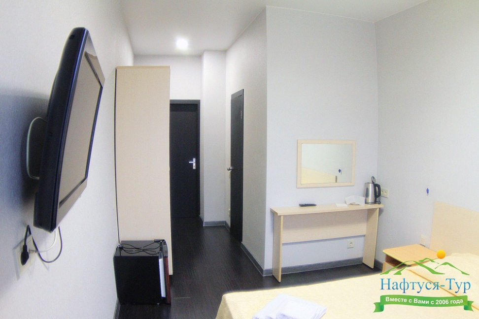 мини-холодильник, телевизор, телефон, чайный набор посуды, электрочайник