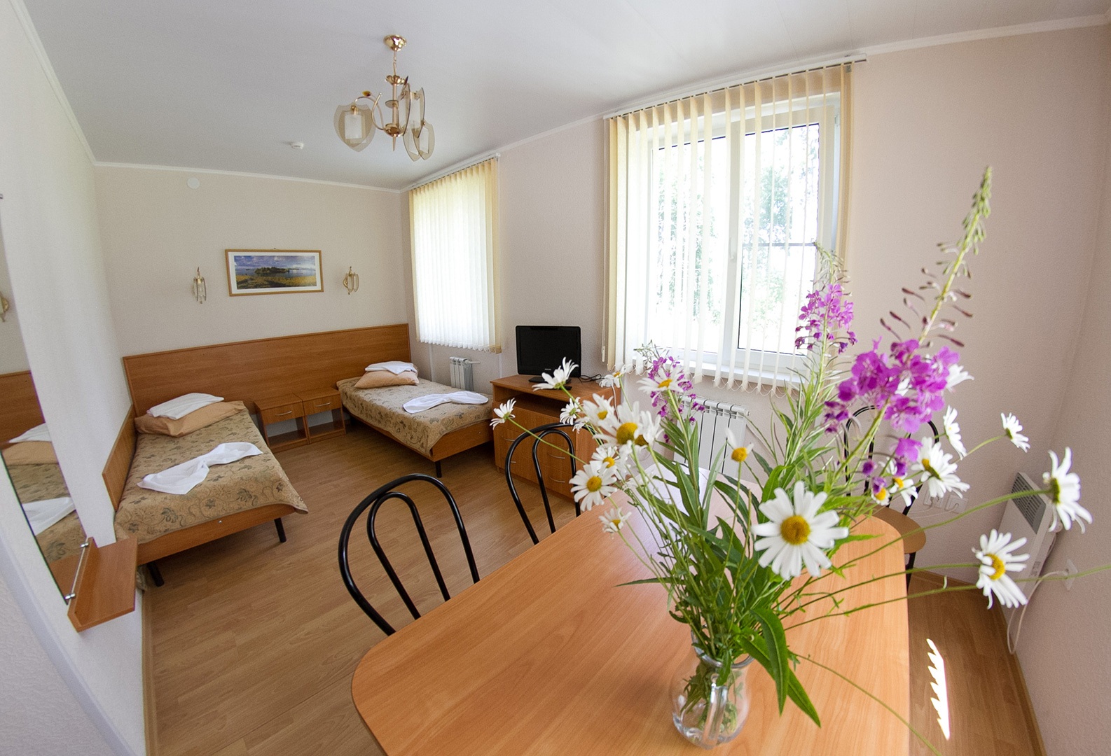 смена постельного белья (раз в 5 дней) , уборка номера (по требованию)