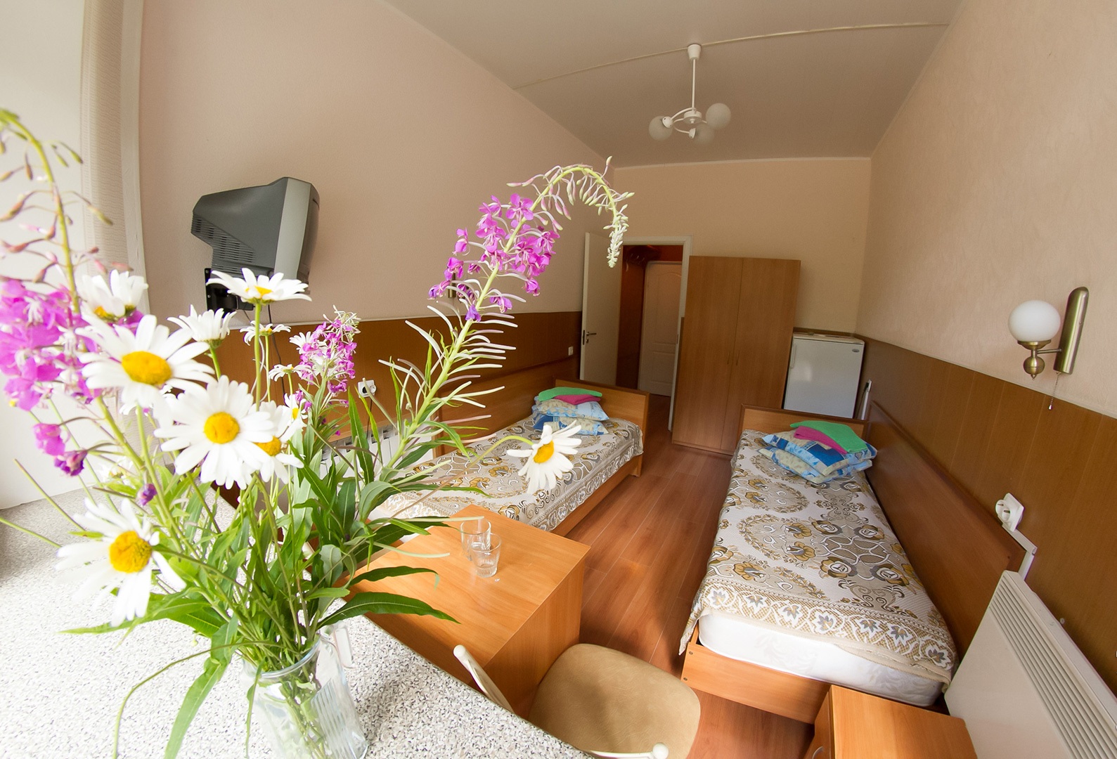 кровати односпальные, прикроватные тумбочки, шкаф