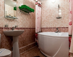 с ванной или душевой кабиной, туалетные принадлежности, фен