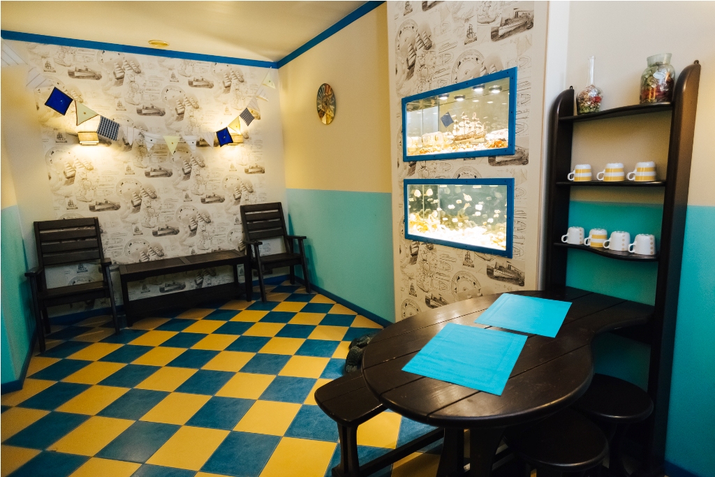 мини-холодильник, телевизор, чайный набор посуды, электрочайник