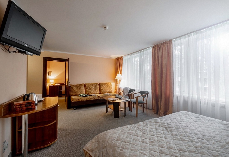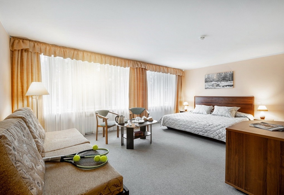 Хорошая база отдыха прямо на берегу Вуоксы, много развлечений для взрослых и детей, живописный эко маршрут рядом, не плохие номера, но слегка подуставшие, брали питание - всё понравилось.