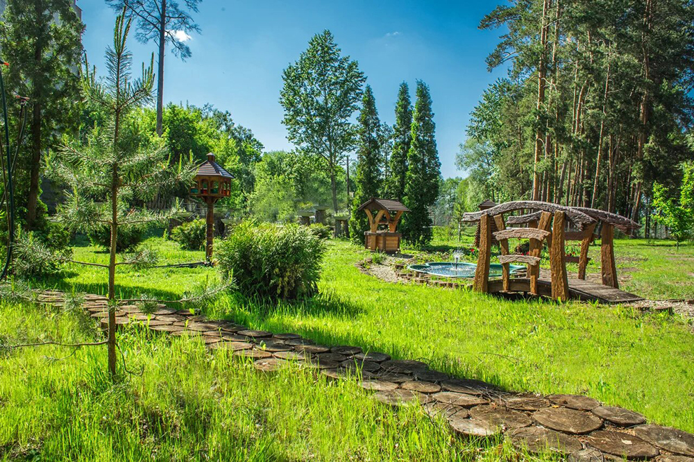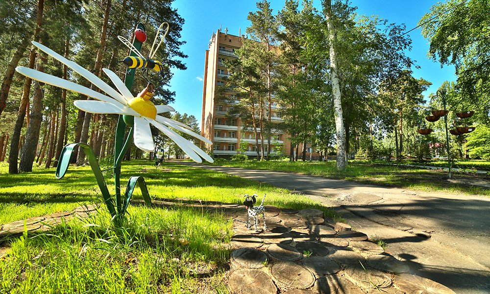 - расположен на окраине города в сосновом лесу и это позволяет наслаждаться природой