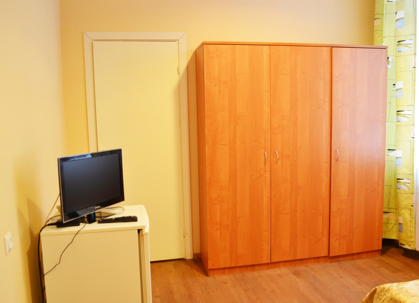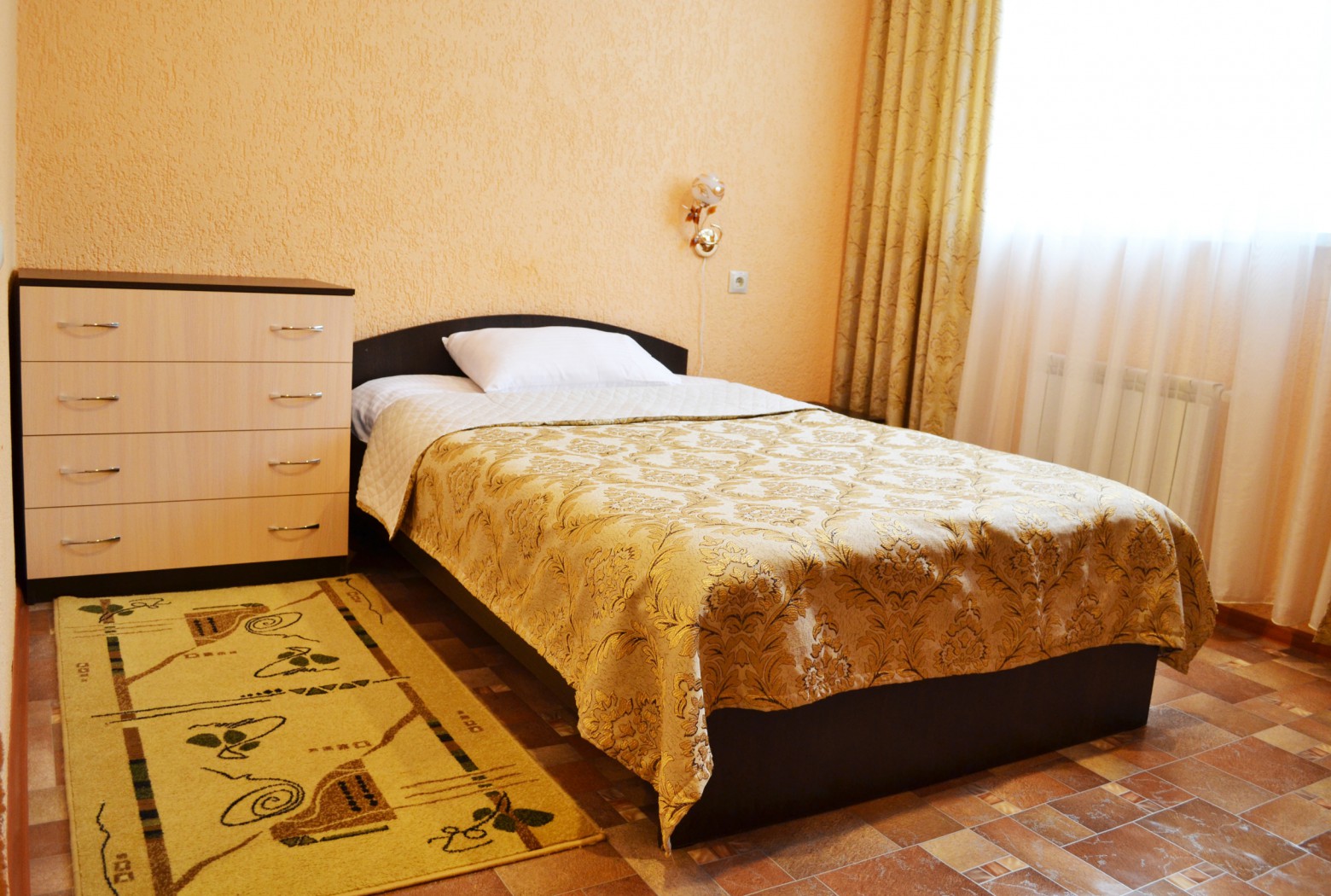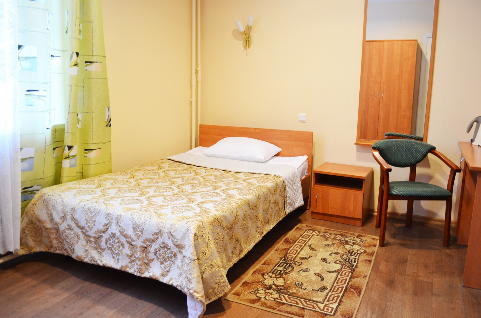 кровать односпальная, прикроватные тумбочки, стол, стулья, шкаф