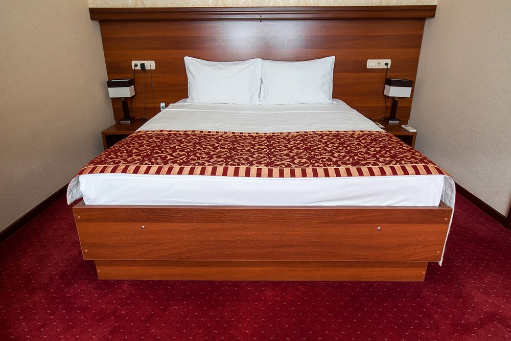 кровать двуспальная, прикроватные тумбочки, стол, стул, шкаф