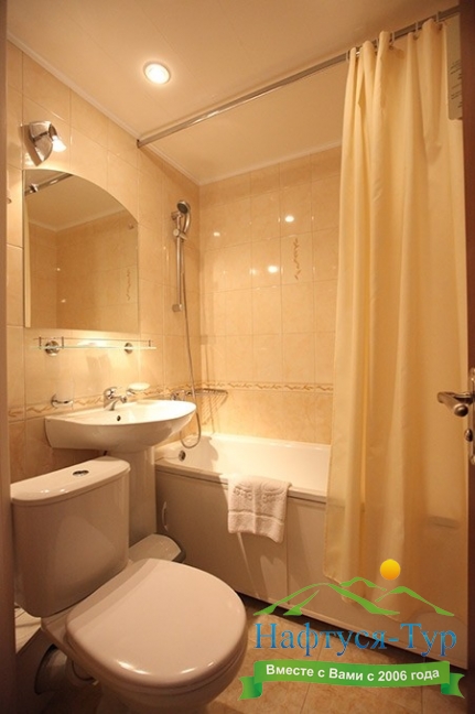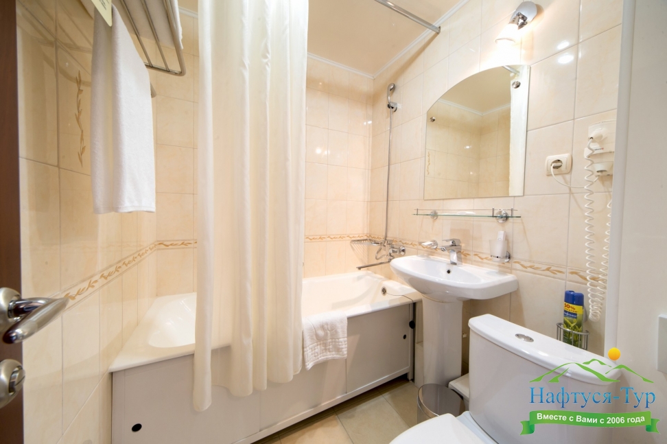 2 санузла, с ванной, тапочки, туалетные принадлежности, фен, халат