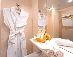 с ванной/душем, тапочки, туалетные принадлежности, фен, халат