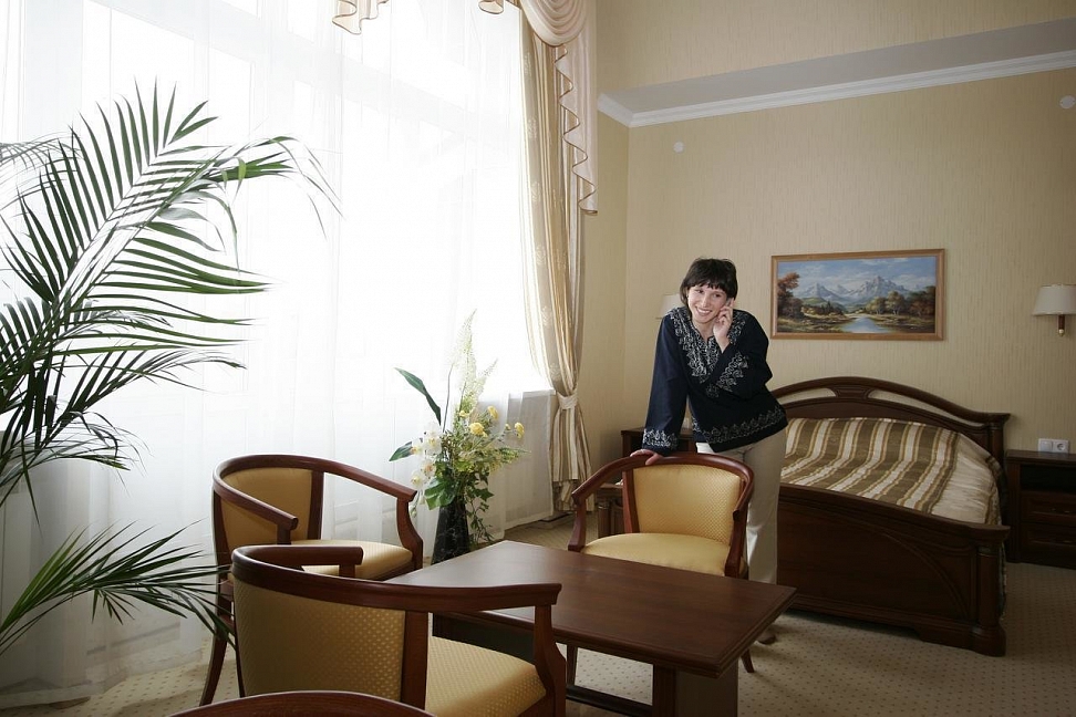 Только что приехали с супругом - довольны очень! Нас заселили в прекрасный стандарт с одной большой кроватью, хотя при предварительном бронировании упоминалось,что скорее всего таких номеров в наличии не будет - предлагали стандарт с двумя раздельными кроватями.