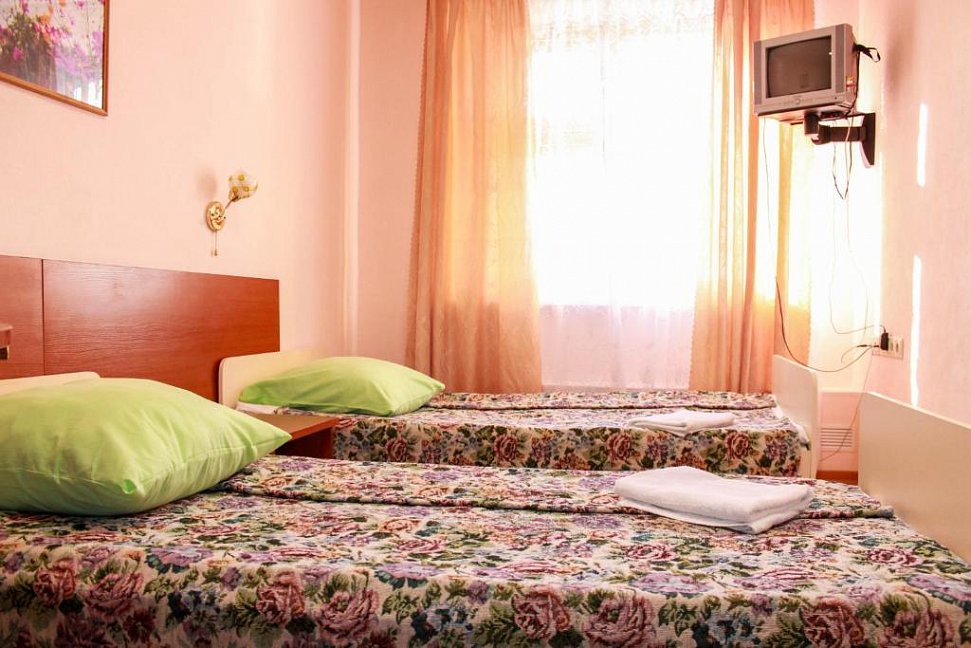 Четырехэтажный корпус гостиницы расположен на пересечении улиц Маяковского и Профсоюзов. Гостей ожидают двухместные номера Стандарт и четырехместные двухкомнатные Делюксы. В каждом номере отдельный санузел с ванной, мини-телевизор, холодильник.