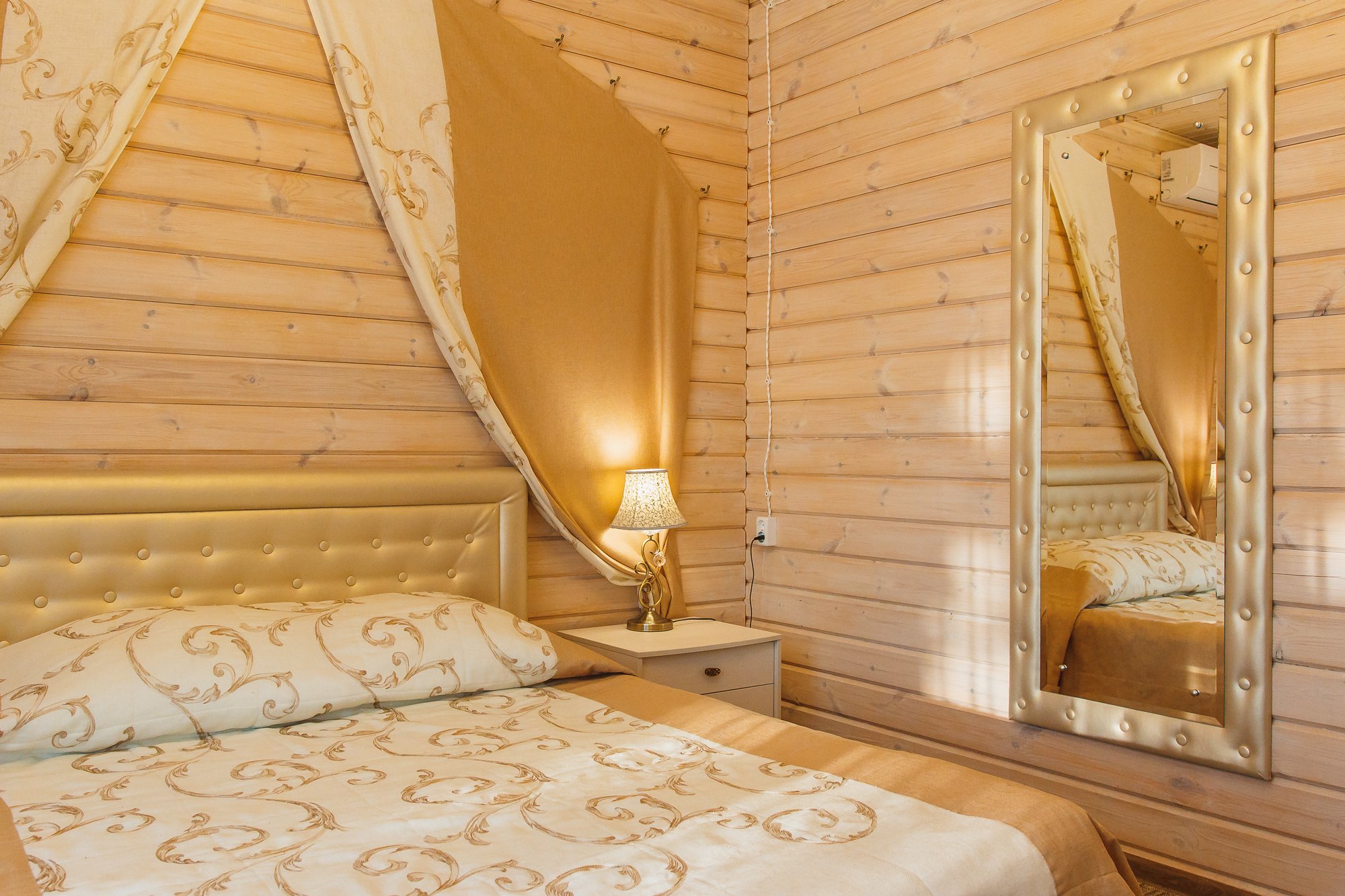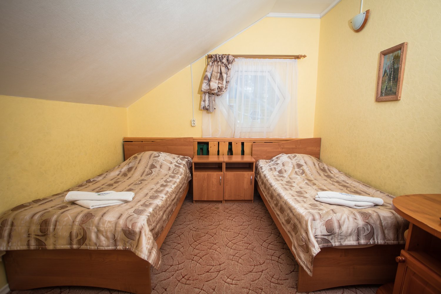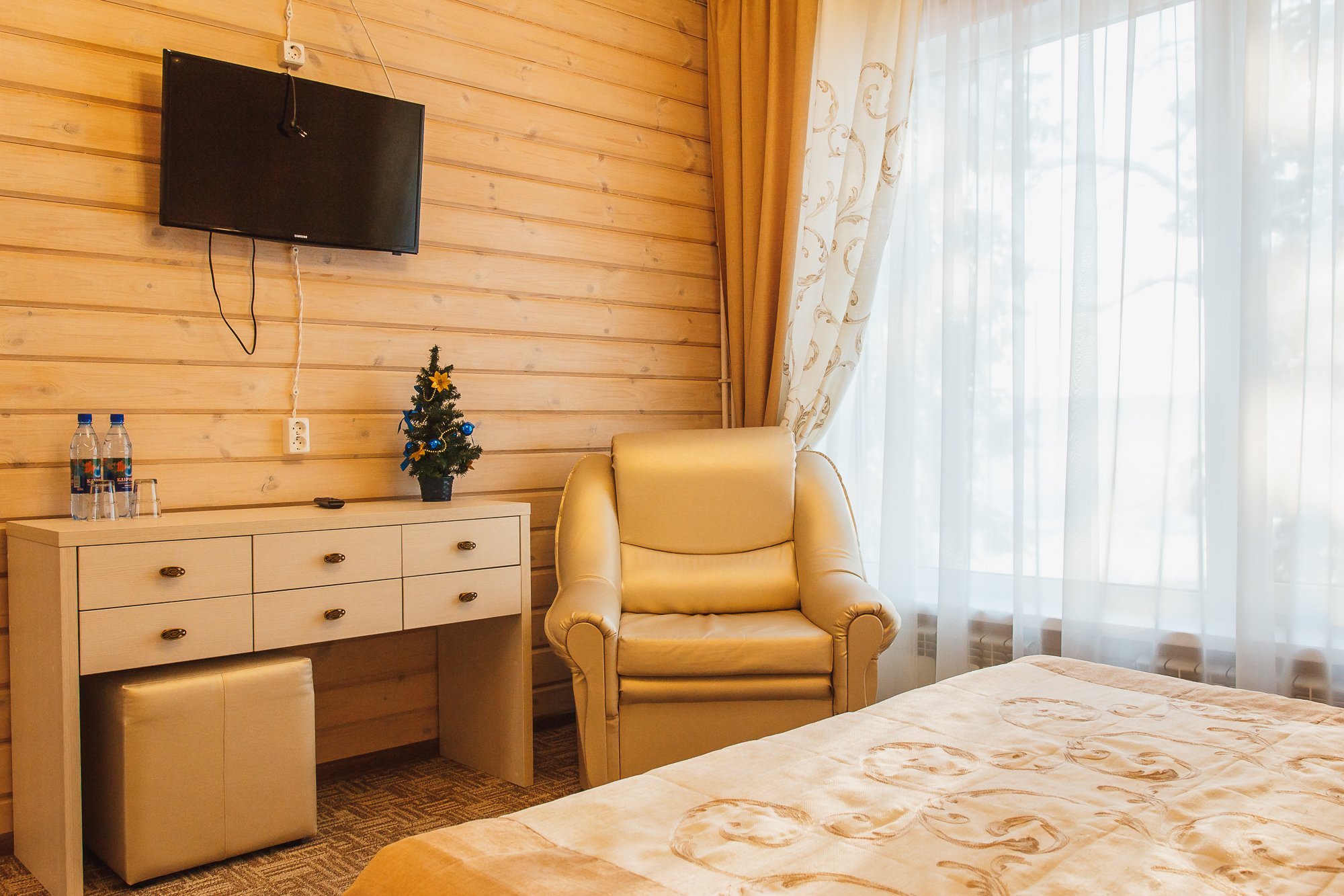 Для проживания дорогих гостей в «Вотчине» подготовлены яркие коттеджи-«теремки» из натурального дерева, как будто только что сошедшие со страниц любимых сказок. В коттеджах очень уютная обстановка: удобные номера разного уровня комфорта со всем необходимым: мебелью, телевизорами, холодильниками, кухнями, но самое главное то, что из окон видно сказочный терем Деда Мороза.