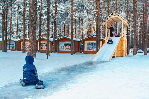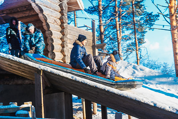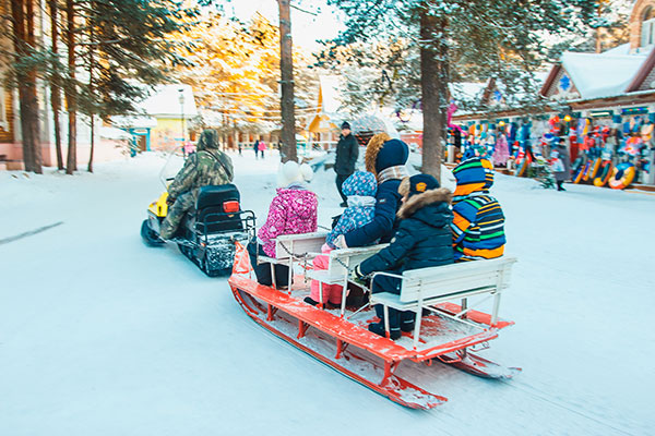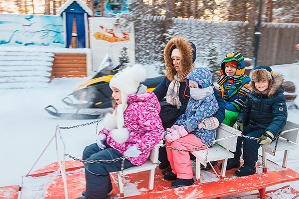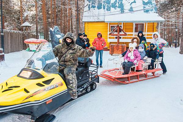 Для детей на территории Вотчины Деда Мороза продуманы разнообразные круглогодичные аттракционы: городки, батуты, заезды на роликах и квадроциклах по лесным тропинкам, лыжи, катание на снегоходах, на печи, на пневмосанях с "русских горок".