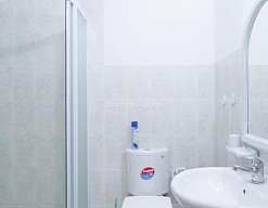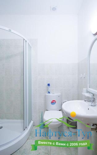 с душевой кабиной, тапочки, туалетные принадлежности, фен, халат