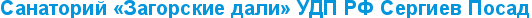 Санаторий «ЗАГОРСКИЕ ДАЛИ» УДП РФ, Сергиев Посад Подмосковье, находится на северо-востоке Московской области, в одном из самых живописных мест центральной России в 65 км от Московской кольцевой автомобильной дороги. Основные направления лечебно-реабилитационной работы Основной профиль санатория – заболевания сердечно-сосудистой системы, органов дыхания, опорно-двигательного аппарата, нервной и эндокринной системы.